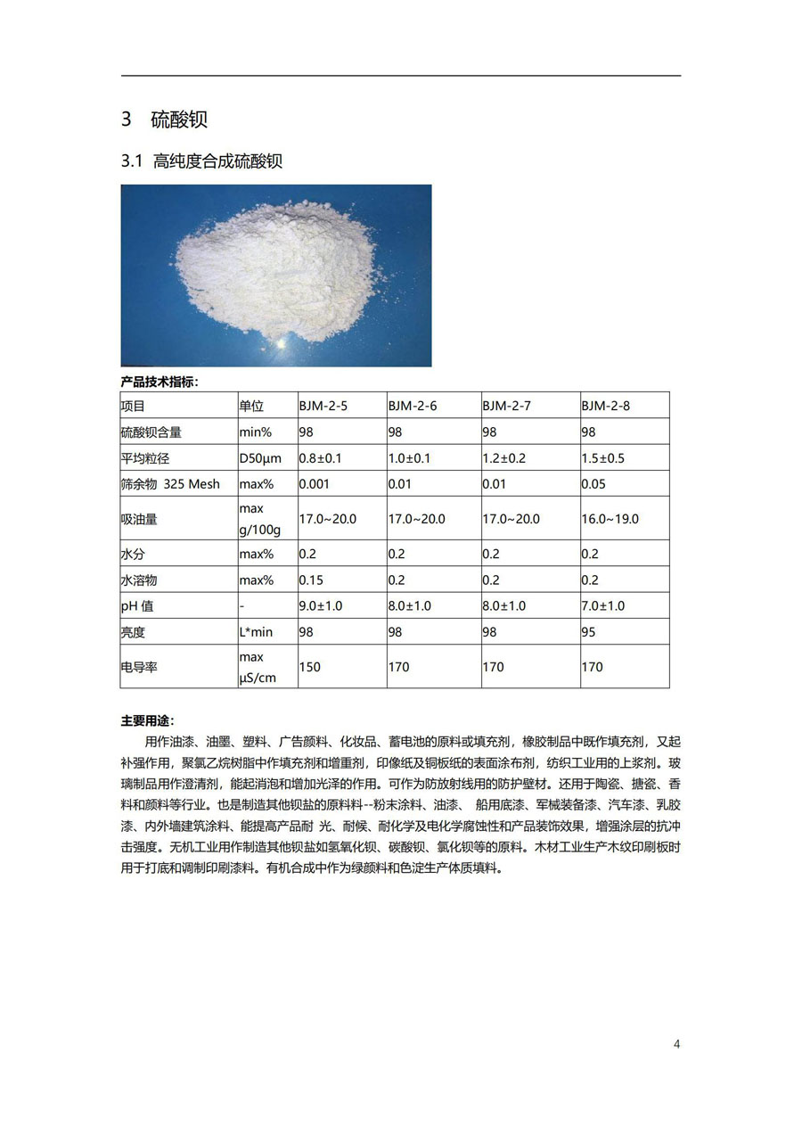 簡述: 本產(chǎn)品為高純度合成硫酸鋇。