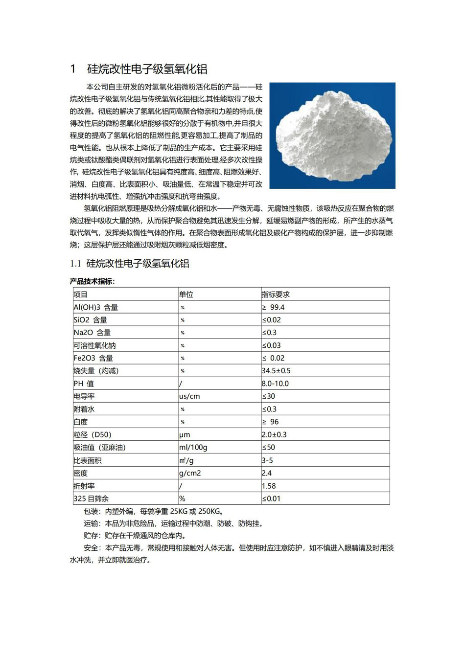 產品名稱: 硅烷改性電子級氫氧化鋁